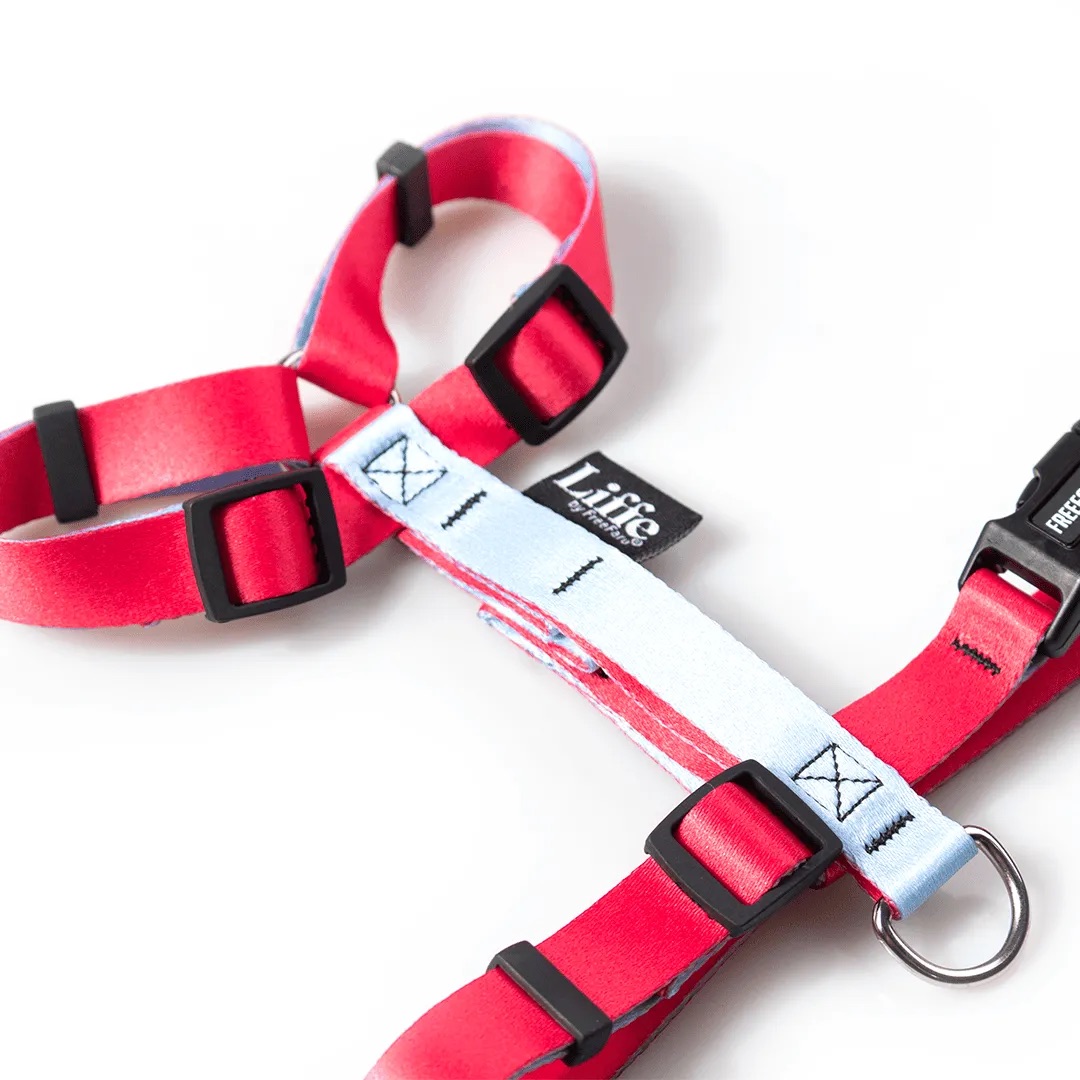 Seu design inteligente distribui a pressão de maneira uniforme, proporcionando conforto durante o uso. Fácil de ajustar, adapta-se perfeitamente ao pet oferecendo um encaixe seguro e confortável.
